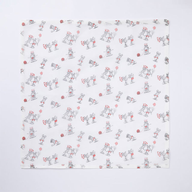 赤いチョッキを着たねずみくんに、いろんな動物たち。ユーモアとやさしさにあふれた絵本の世界を、花ふきんにデザインしました。よく吸って、すぐ乾く。色々使える大判サイズ