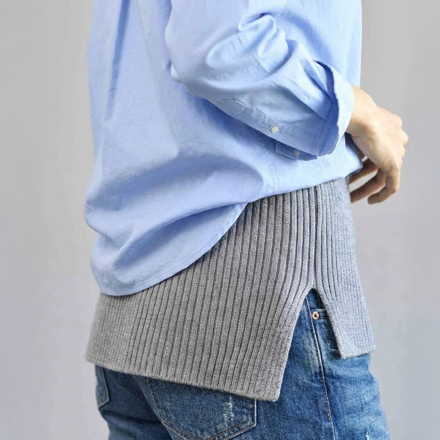 裾はしっかり、おなかはすっきり、ニットだからできるこだわり