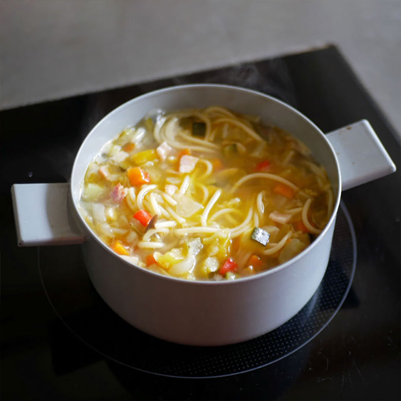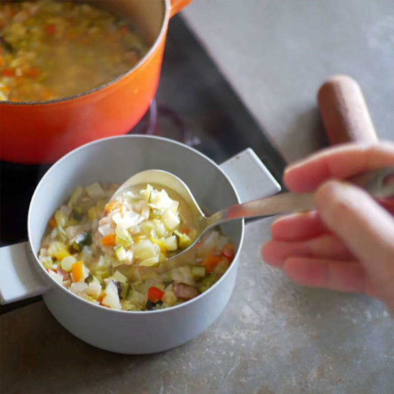火の通りが均一で、素材の旨みを逃さず調理できる鉄本来の性能に加え、酸や塩分にも強くなり、鉄特有のにおい移りも軽減。鉄の調理性能とホーローの実用性を兼ね備えた、スープ料理にぴったりな深型鍋が完成しました。