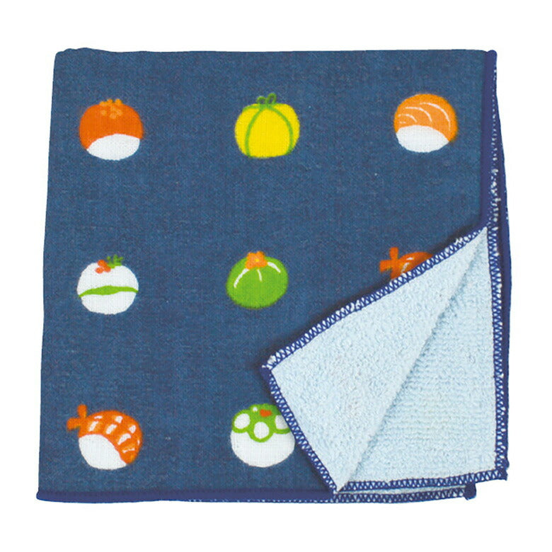苺やコーヒー豆などが描かれた可愛らしいハンドタオルです。