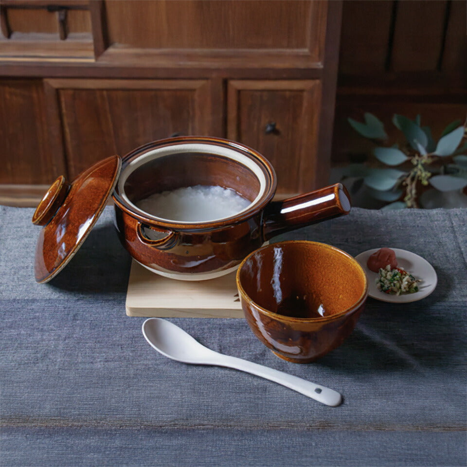 ころんと丸い形が食卓にほっこりとしたあたたかさを演出してくれる土鍋。遠赤外線効果で具材に芯からしっかりと火が通り、美味しいおかゆができあがります。