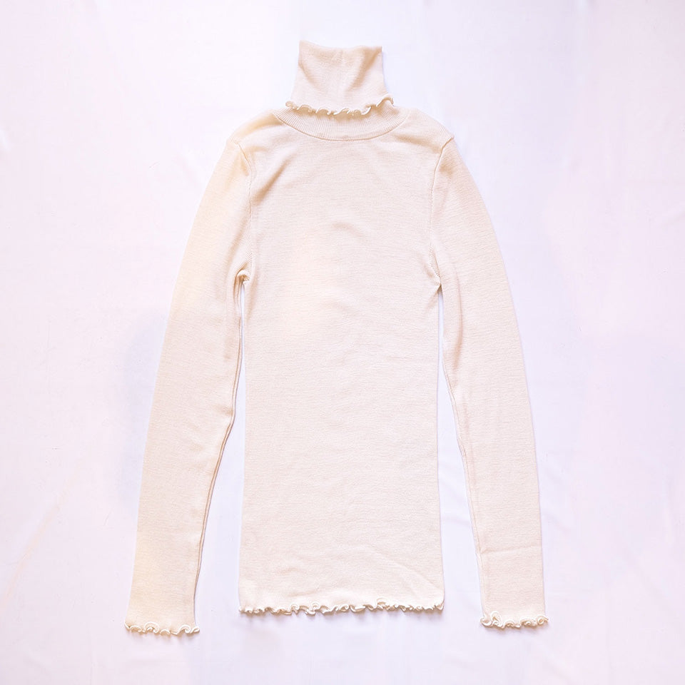 袖口や裾口にあしらわれた繊細なメローが、女性らしさを引き立てます。素材 ウール100% サイズ(cm) 身丈:65 / 身幅:28 / 袖丈:60 お洗濯について ●液温は30℃を限度とし、洗濯機で非常に弱い洗濯処理ができる。