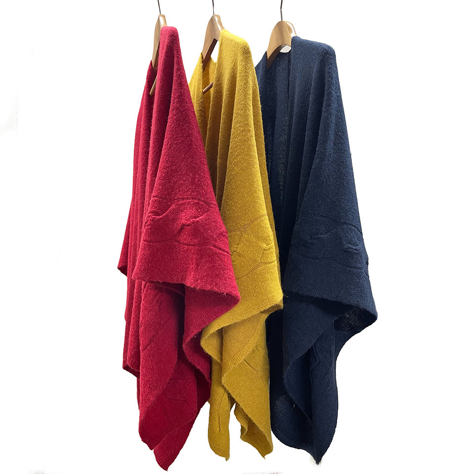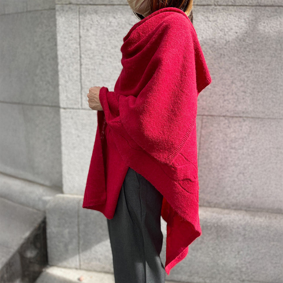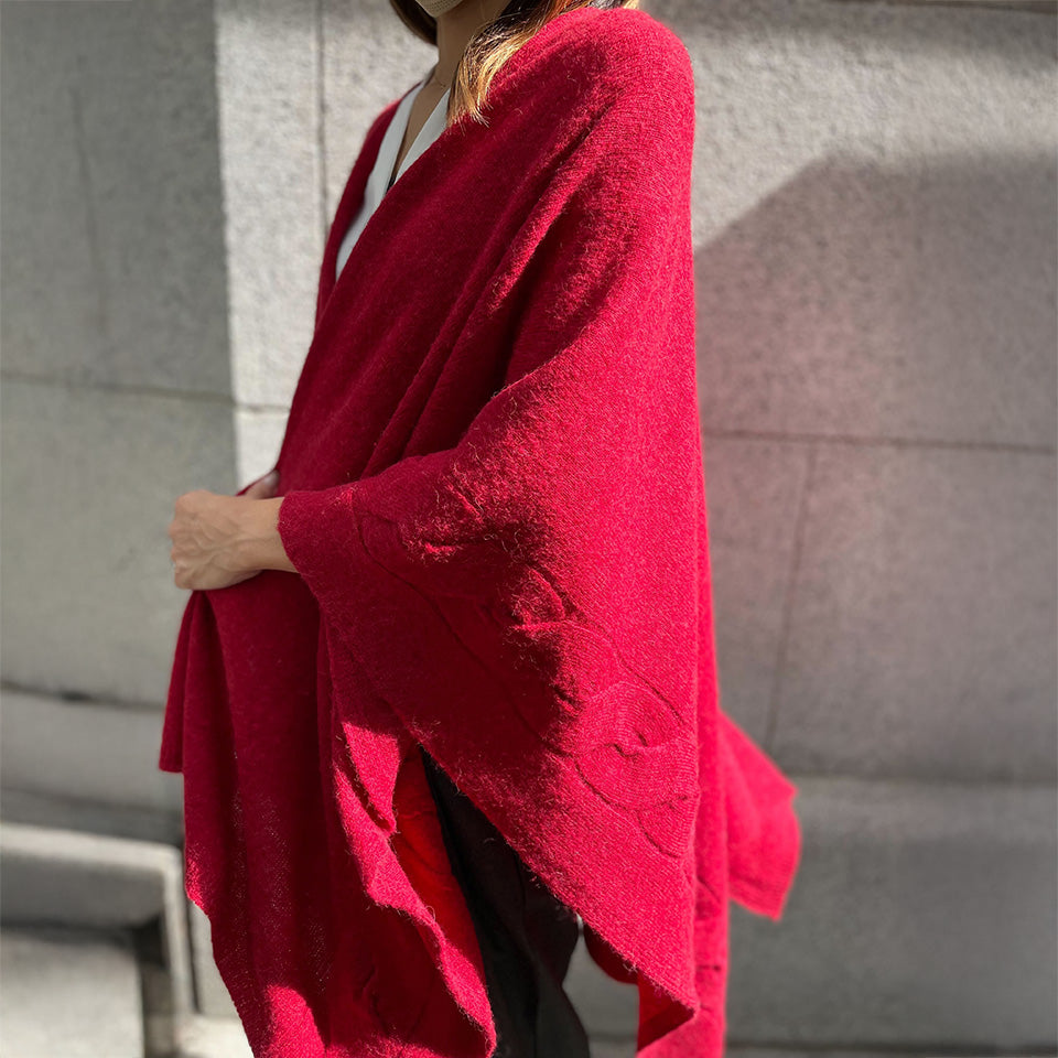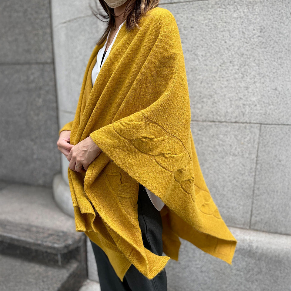 tate 羽織るポンチョ / なめらかアルパカ 大きなケーブル柄