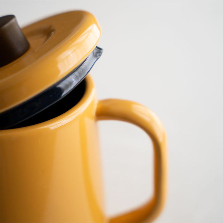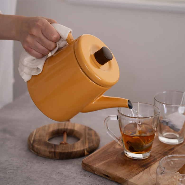 素材 琺瑯用鋼板・天然木(欅) 容量 満水容量:1.5L 重さ 約900g サイズ(cm) 最大幅:約22.5 奥行:13 高さ:17.5 日頃のお手入れ ご使用後は、中性洗剤とスポンジで洗い、水気をよく拭き取り乾燥させてください。 サビについて 琺瑯には工程上、鋼板の切断部にあたる端部(フチ部など)や、焼成時に、吊り具で吊るした吊り跡・置き跡等、釉薬がかかりきらない箇所があります。