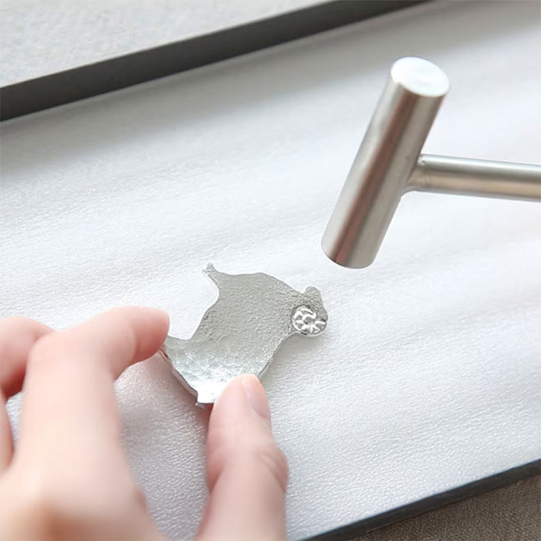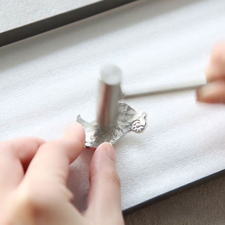 箸置きの表面にハンマーを打ち付けることでどうぶつの毛並みが表現され、とても愛らしい世界に二つとない自分だけの箸置きが出来上がります。