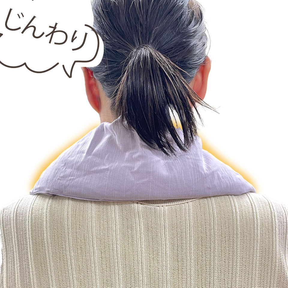600wの家庭用電子レンジで1分加熱し、身体に当てるだけ。首の後ろ、肩、お腹、足、お尻など、ご自身の体の温めたい部分に使用してください。保湿と焦げつき防止のため、電子レンジ対応のコップに半分水を入れて、一緒に温めるようにしてください。