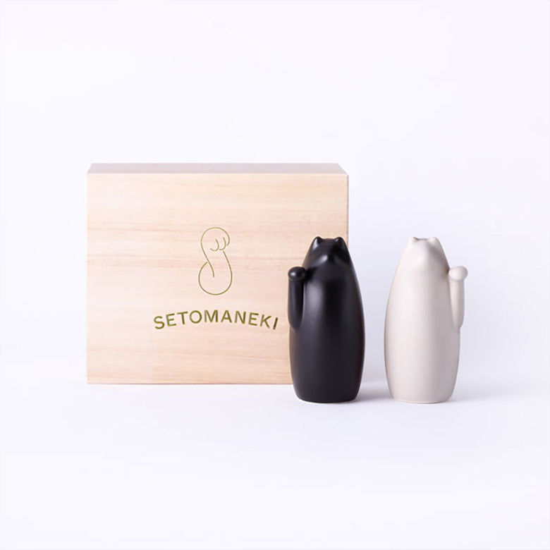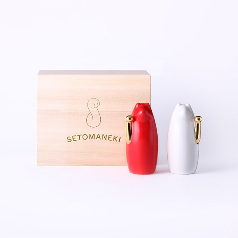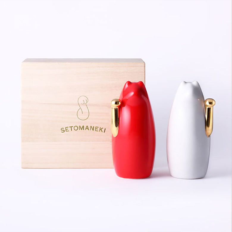 1000年以上の歴史を持つ瀬戸焼の産地にある中外陶園が、招き猫をもっと身近に感じて欲しいという想いから作られたのがこちらの招き猫。形はシンプルですが、特徴的な手のフォルムや、素材に陶器や磁器を使用することで釉薬による様々なカラーバリエーションが表現できるのは、他の産地には無い瀬戸ならではの歴史と技法を凝縮させた仕上がりだからこそです。