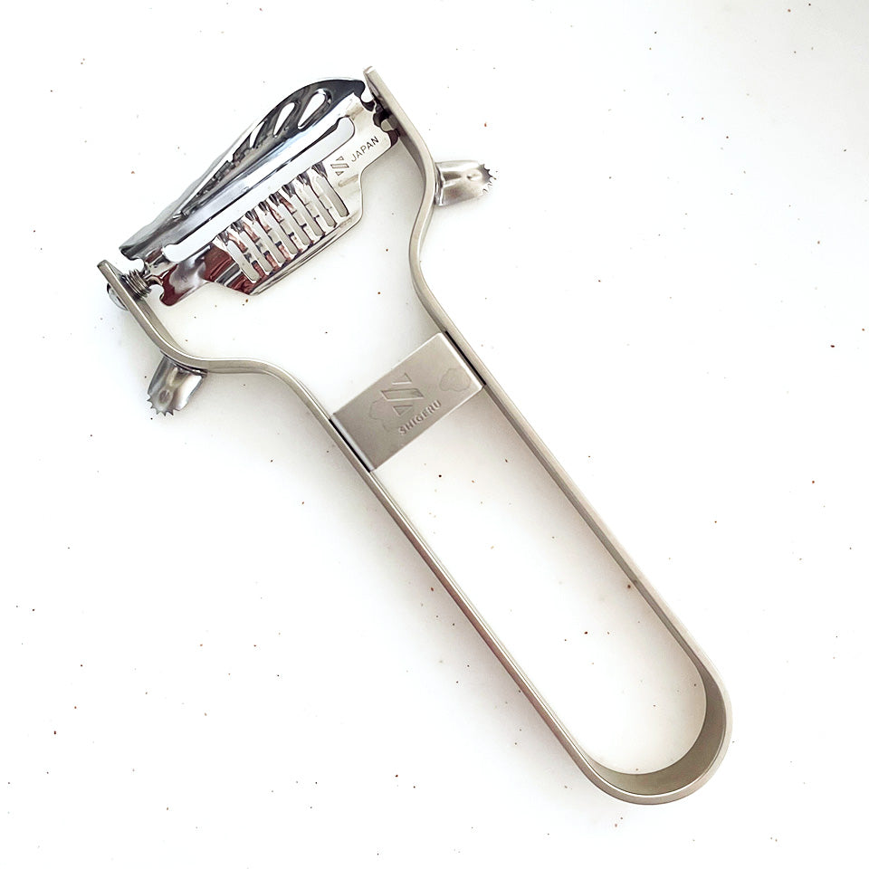 また、ピーラーとしては珍しい「替刃式」を採用しており、切れ味が落ちても刃を交換することで、一生モノの道具として末永くご愛用いただけます。