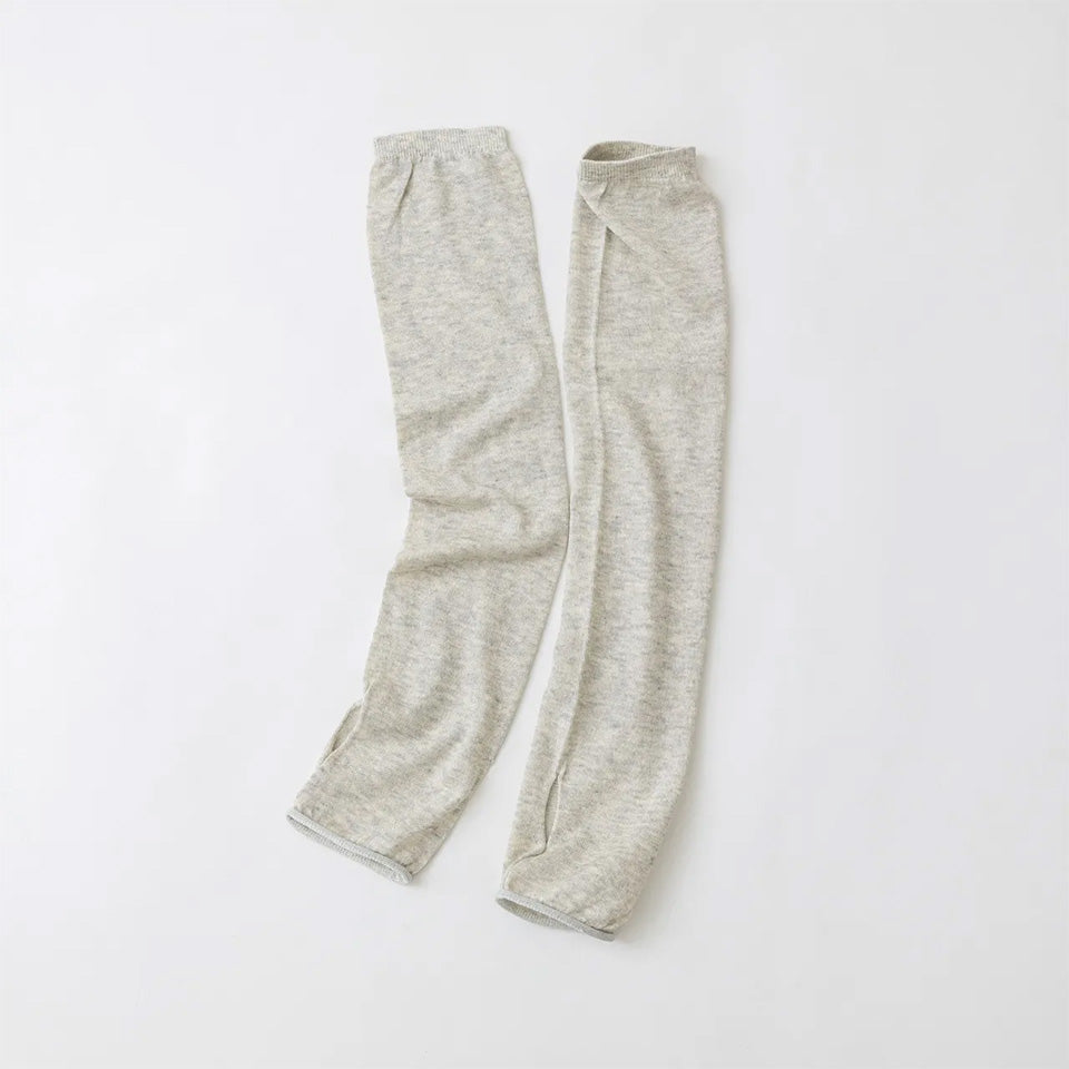 けっして大きな工場ではありませんが、九〇年近くにわたり受けつがれてきた技術とより良いくつ下をつくるための試行錯誤から成る進化を大切に、素材選びから最後の仕上げまでその素材に適した製法でひとつひとつ丁寧につくりあげています。日よけのアームカバーは20年近く前から作っている、ロングセラー商品です。