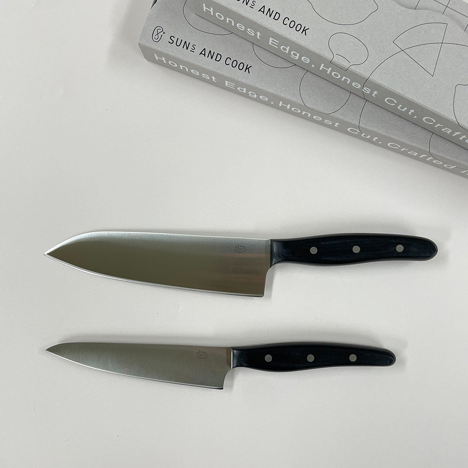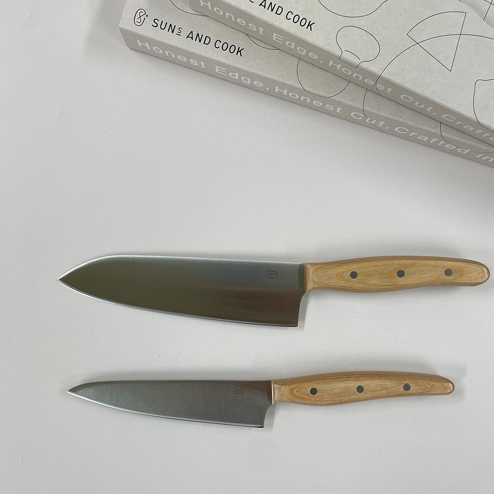 SUNS AND COOK包丁づくりの伝統がいまも息づく“刃物のまち”岐阜県関市で誕生したまっすぐな三徳包丁です。