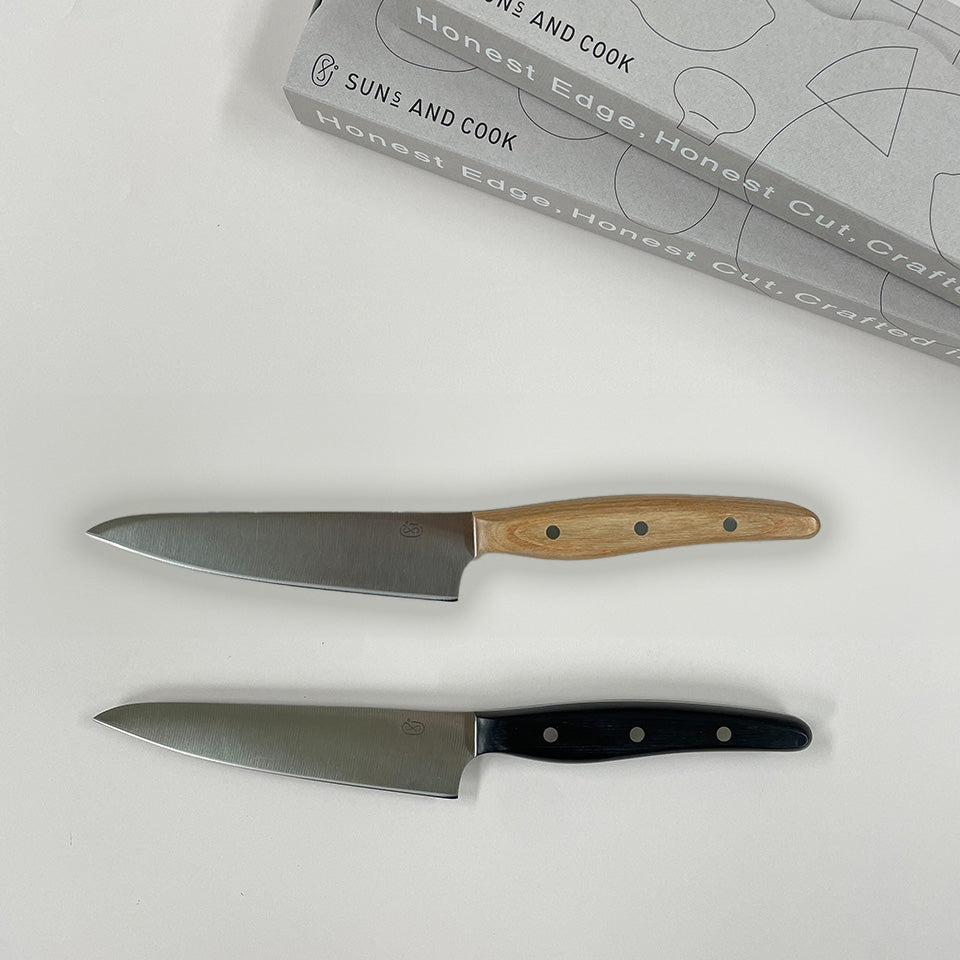 刃渡り16.5cmの三徳包丁と刃渡り13cmのペティナイフをご用意しています。