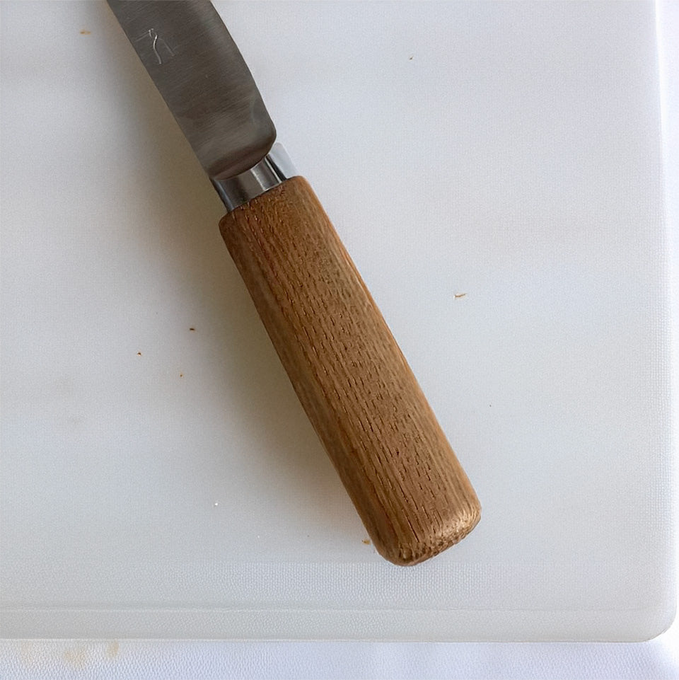 一般家庭では女性が使う場合がほとんどであるのに、女性が使いたくなるような庖丁がないことに着目し、女性プロダクトデザイナーの柴田文江さんにデザインしていただきました。細部まで行き届いたフォルムでありながら、毎日使うものなので主張し過ぎないデザインです。