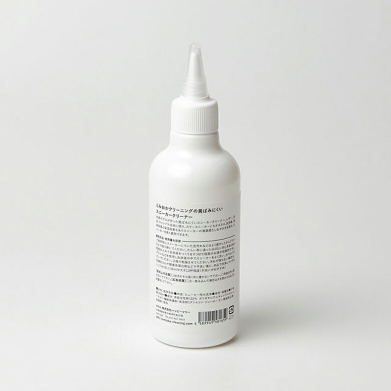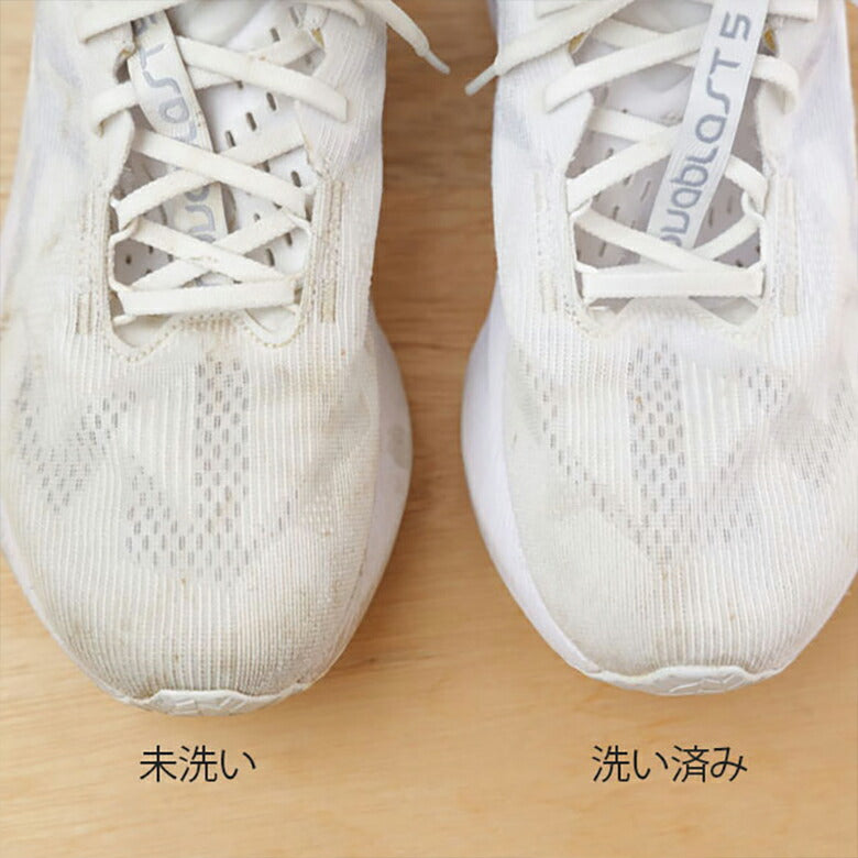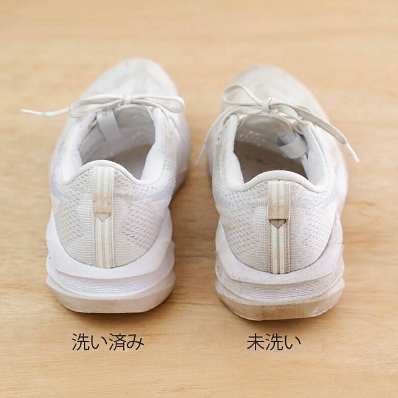 クリーニング屋さんが考案した、黄ばみ戻り成分が配合されています。また、ミント香料入りで爽やかに香ります。消臭剤入りで嫌な臭いも除去。保湿剤入りで洗浄後のスニーカにしなやかさが残ります。